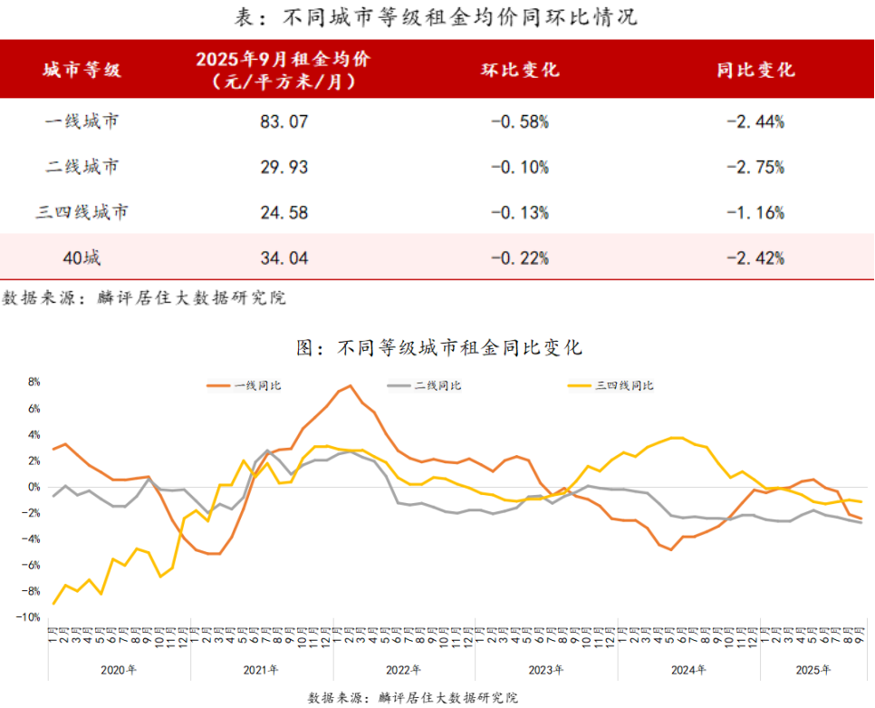 麟评居住大数据盘问院近日发布的讲明显现,2025年9月世界40个大中城市房钱挂牌均价为34.04元/㎡/月,环比下降0.22%,同比下降2.42%。